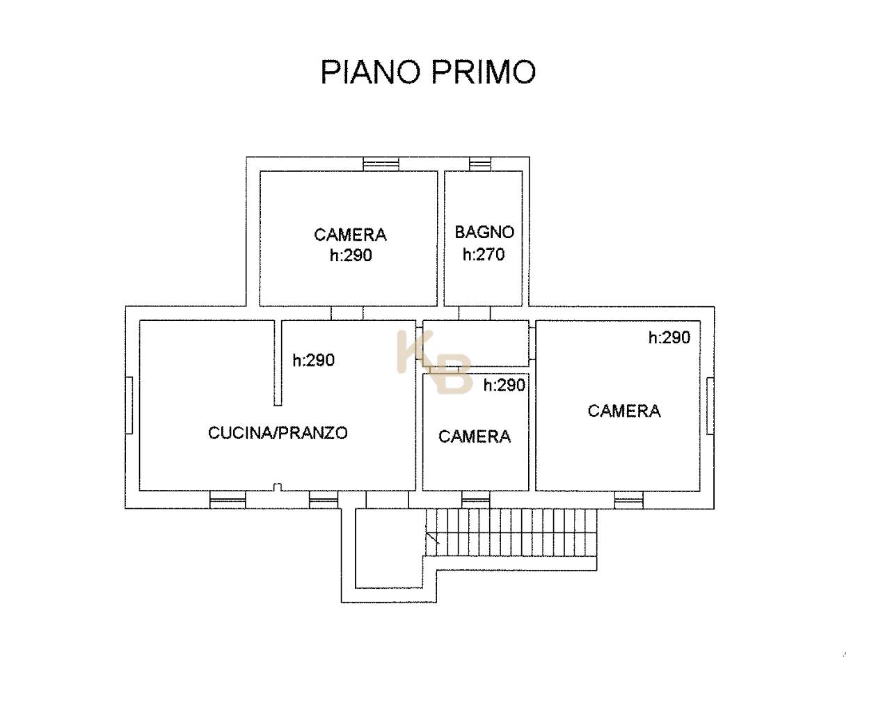 Al piano primo, si sviluppa l’abitazione principale composta da salotto con camino, cucina, soggiorno, due camere matrimoniali e un bagno con doccia.